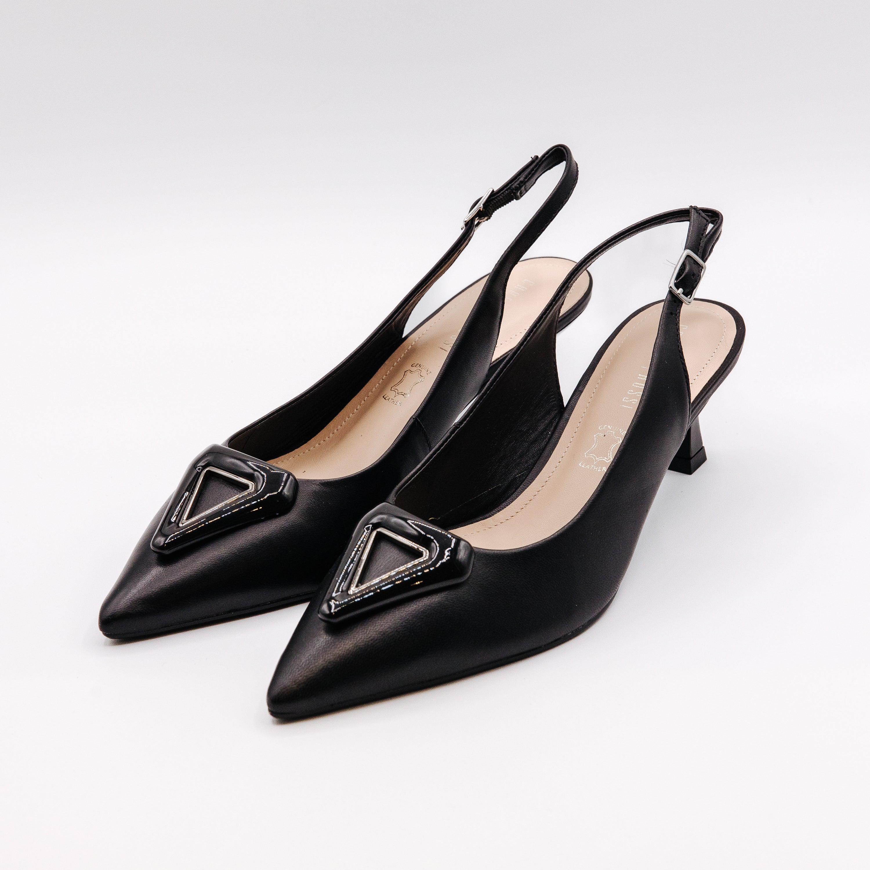 11,990.00 RSD8,990.00 RSDŽenske kožne cipele na potpeticu u crnoj boji sa dekorativnim kopčanjem brenda Noa Noir. Sastav: ... -
