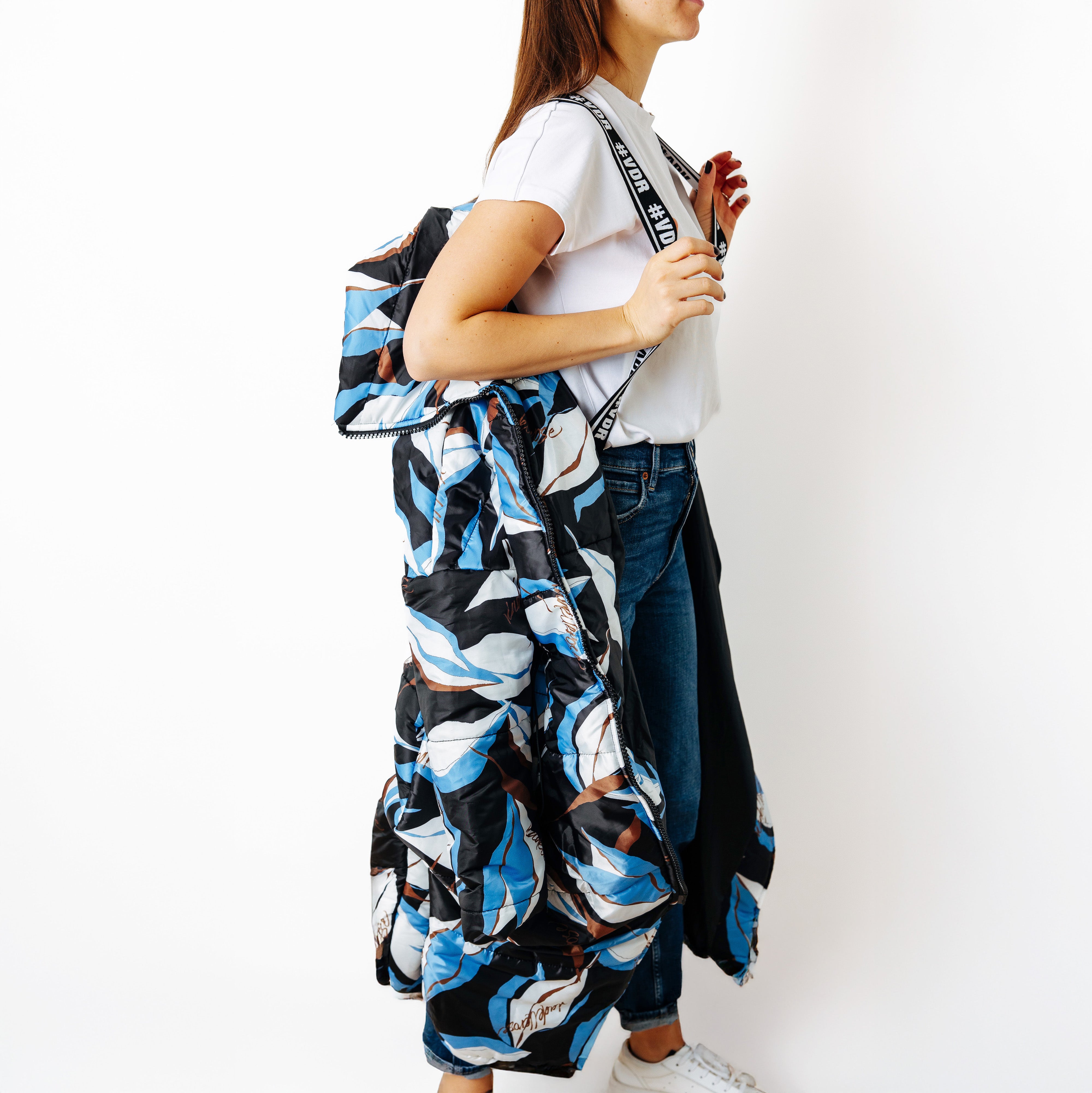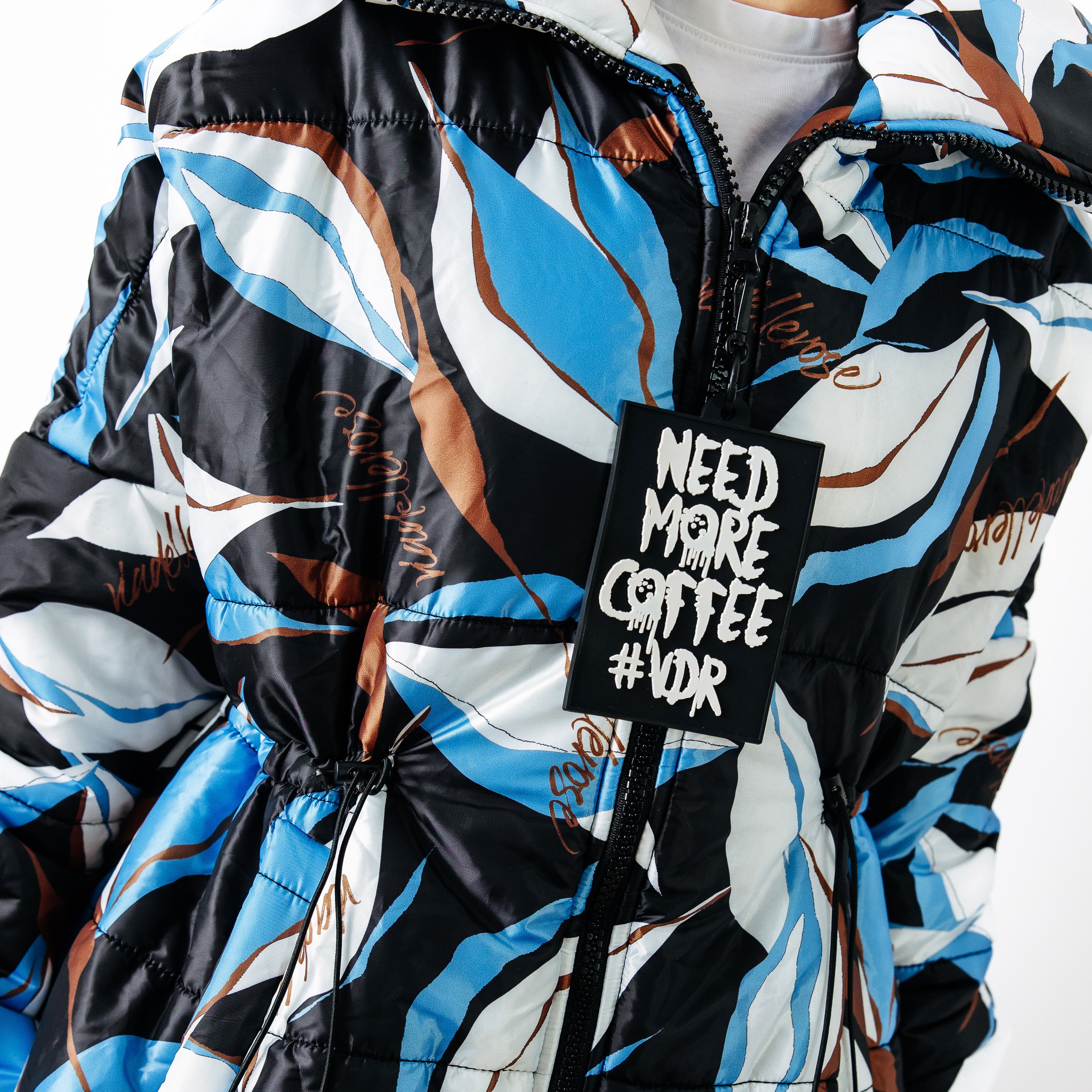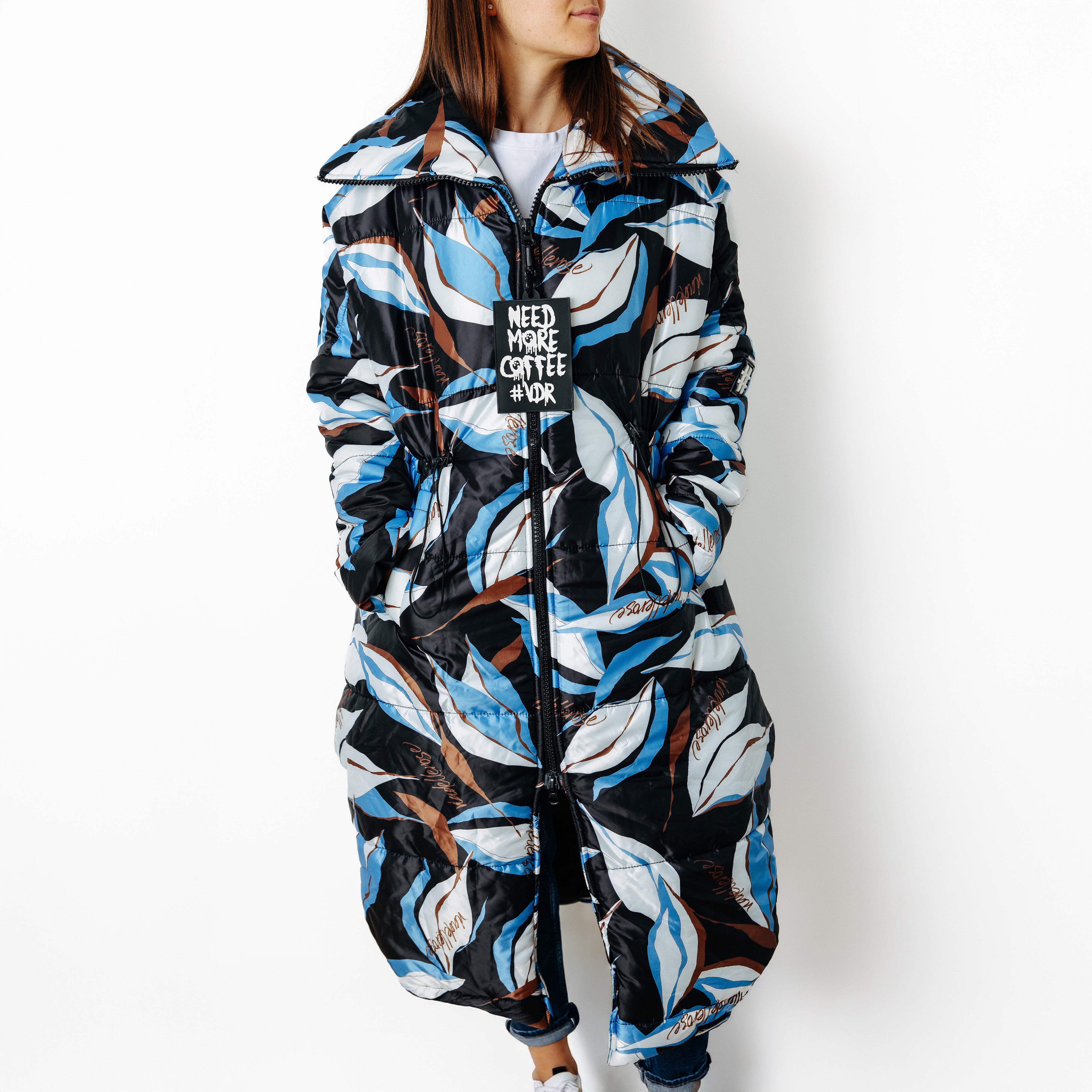 Ženska zimska dugačka oversized multicolor jakna na cibzar sa velikom kragnom, gumom na podešavanje u struku i unutrašnjim tregerima brenda VDR.