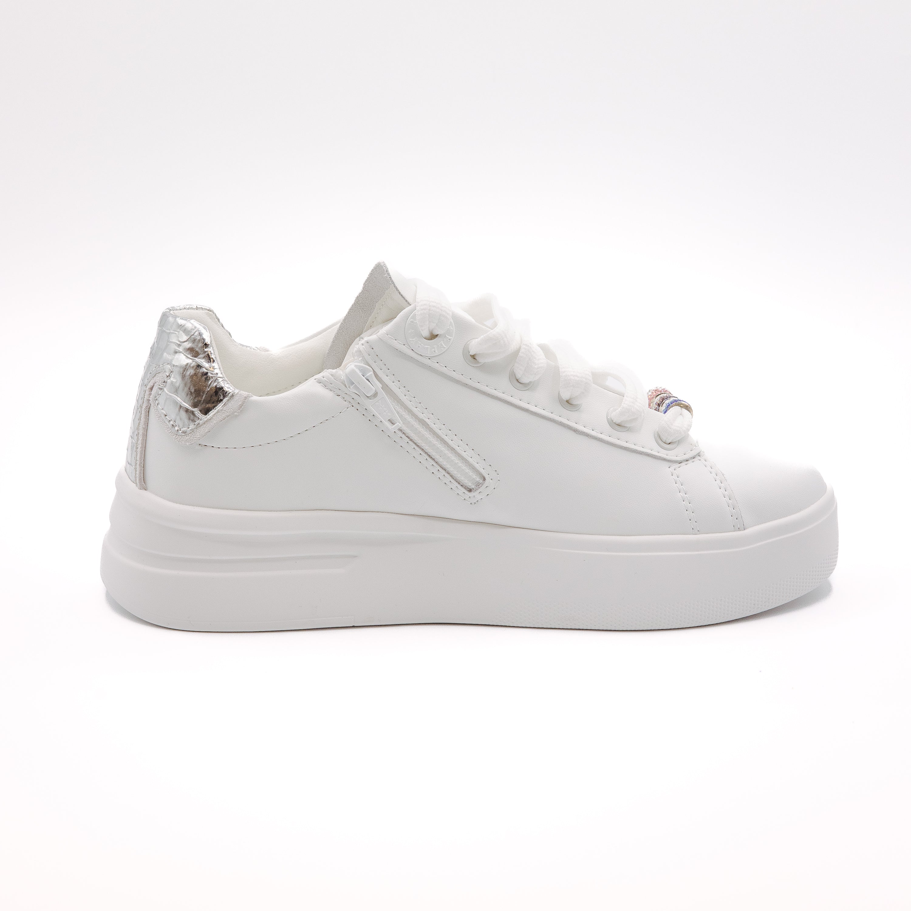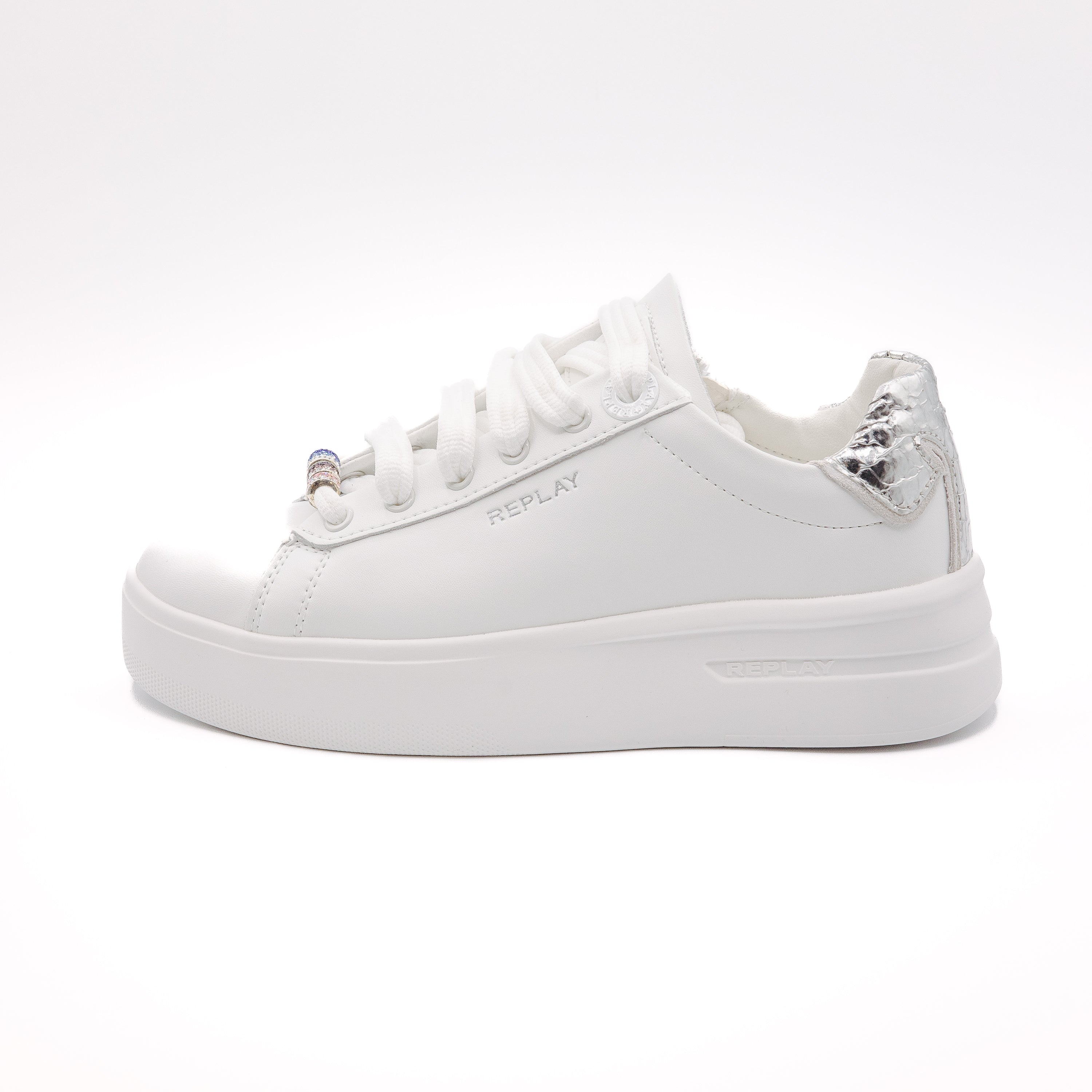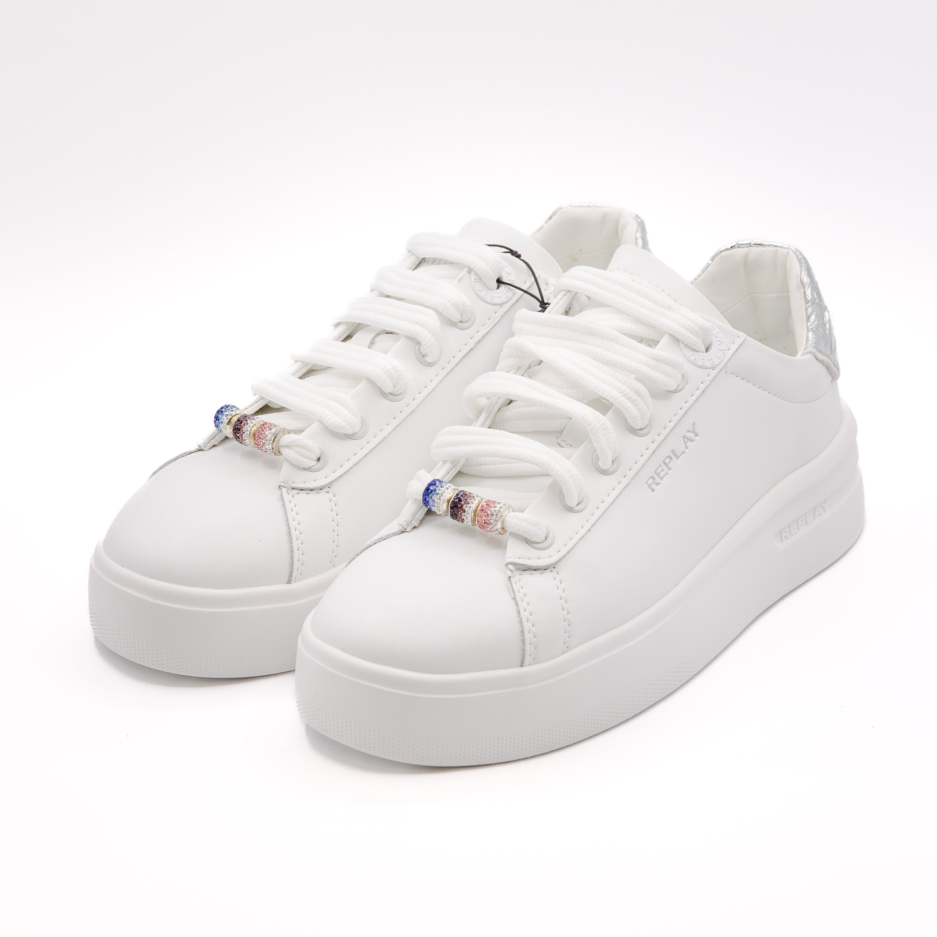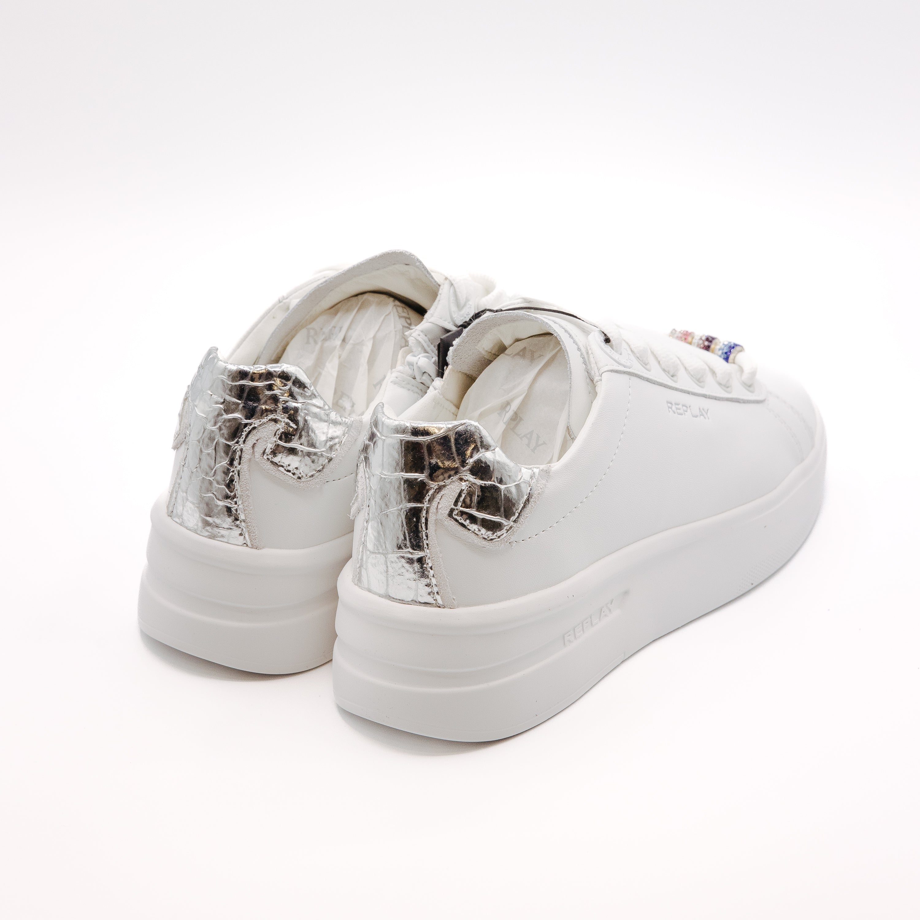 Kožne ženske plitke patike u beloj boji sa naglašenim đonom i srebrnim detaljima brenda Replay.